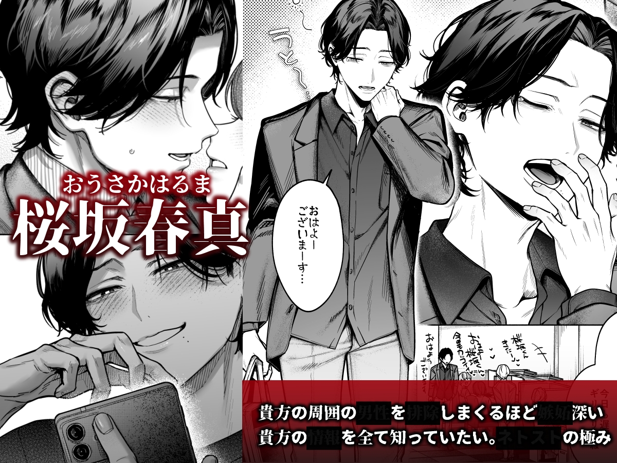 桜坂は、会社の人気者の塩顔イケメンで人気者。性格も明るくてコミュ力が高い。